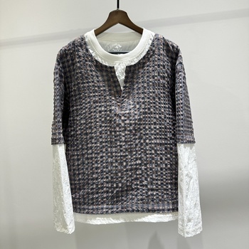 私たちはあなたが探しているすべての製品をカスタマイズすることができます-男性の不規則なフロントテクスチャ長袖シャツ